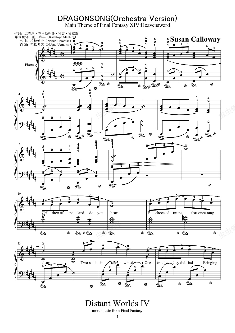 钢琴谱:DRAGONSONG(Distant Worlds IV)