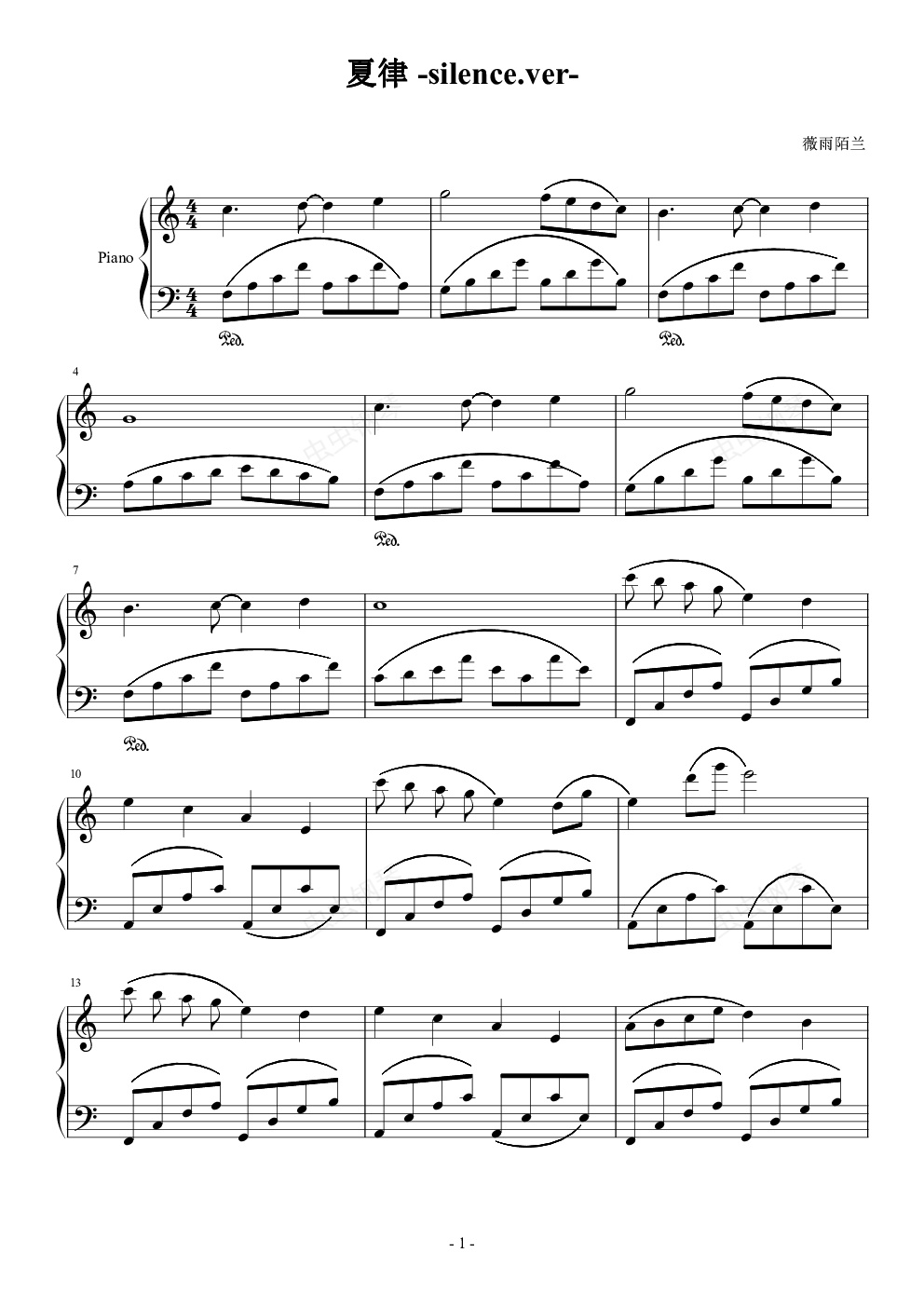 钢琴谱:【薇雨陌兰】夏律 -silence.ver- 瑜乐星X即兴版