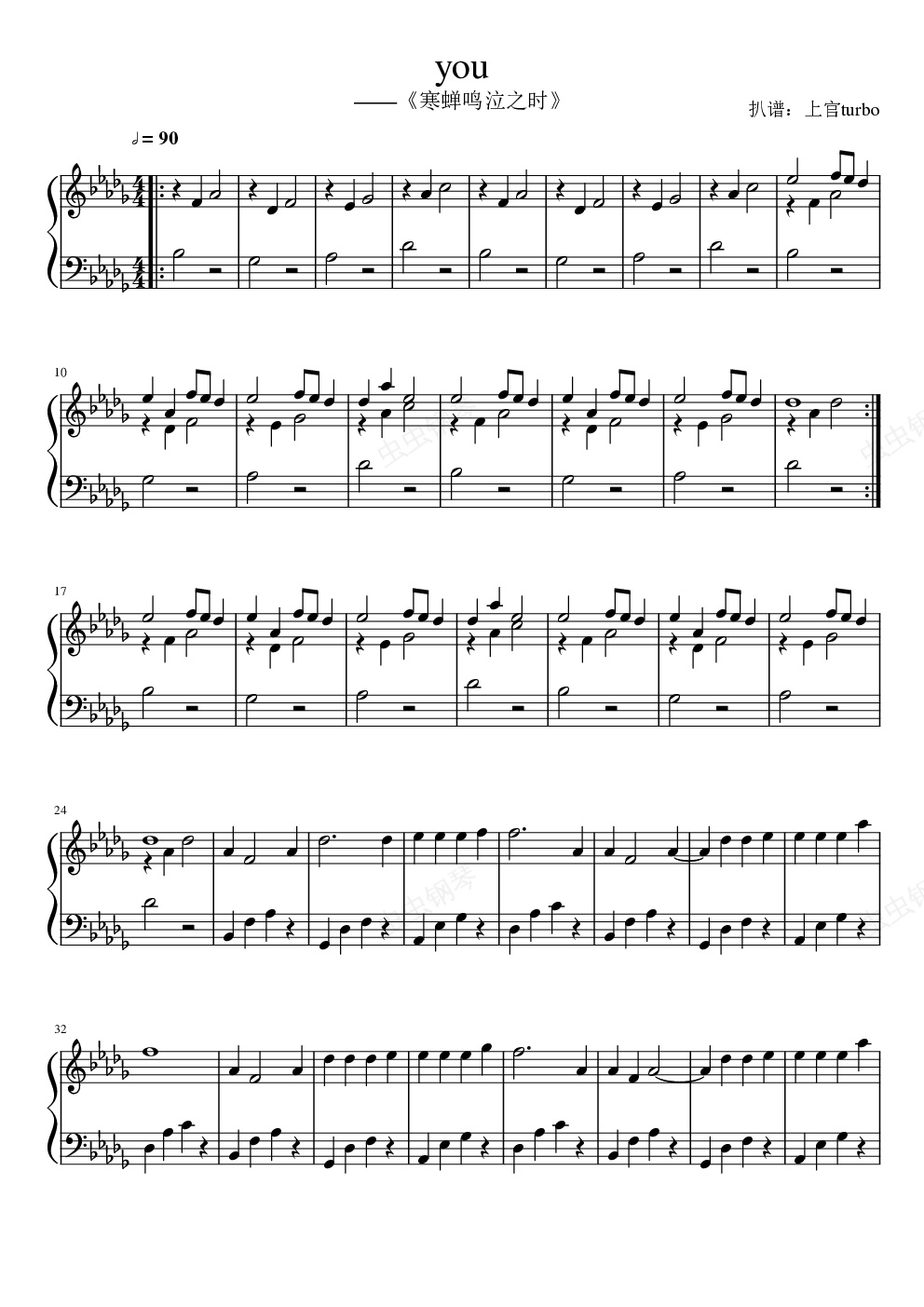 钢琴谱:you ——《寒蝉鸣泣之时》