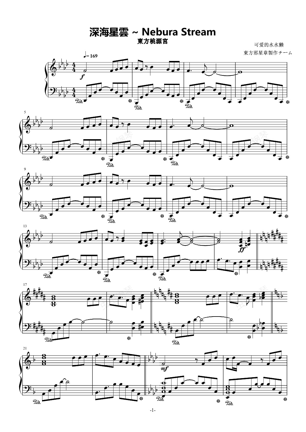 钢琴谱:【东方桃源宫】深海星雲 ~ Nebura Stream