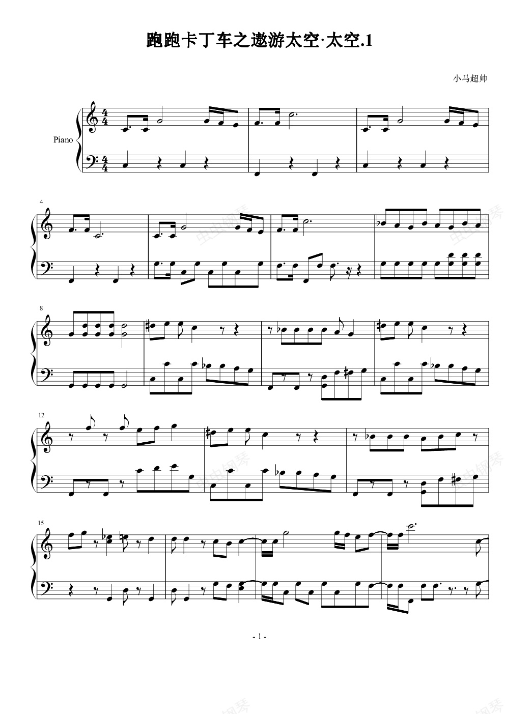 钢琴谱:跑跑卡丁车之遨游太空·太空.1