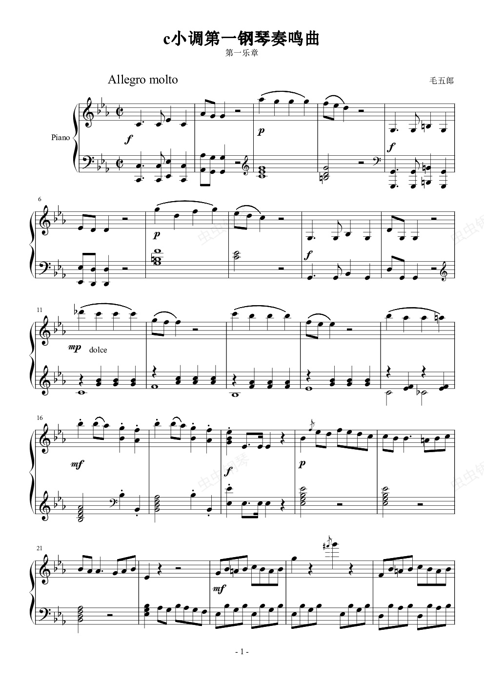 钢琴谱:c小调第一钢琴奏鸣曲 第一乐章