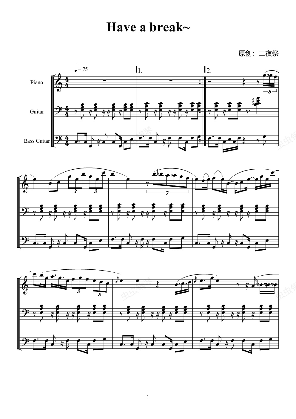 钢琴谱:Have a break~
