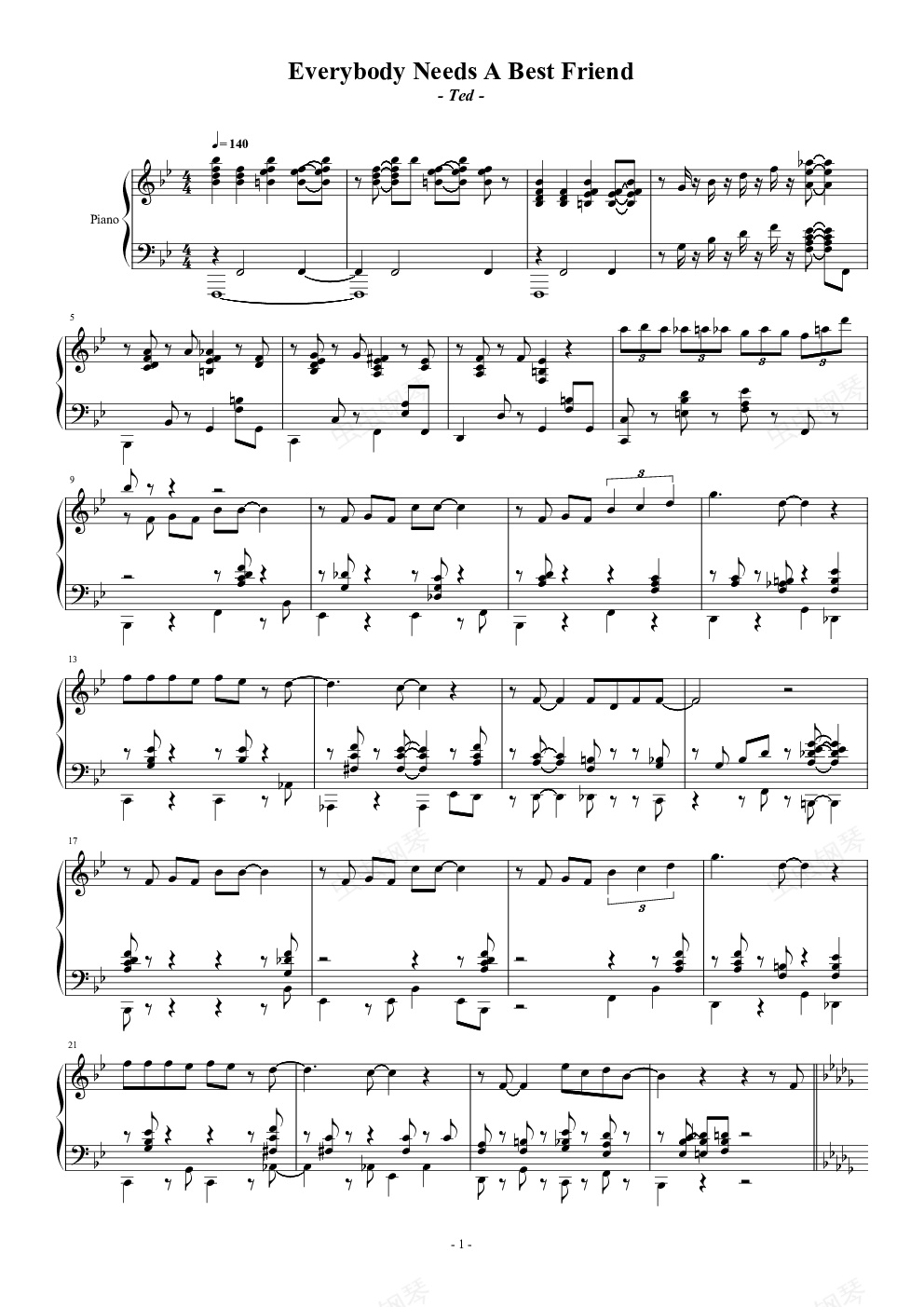 钢琴谱:【泰迪熊】Everybody Needs A Best Friend
