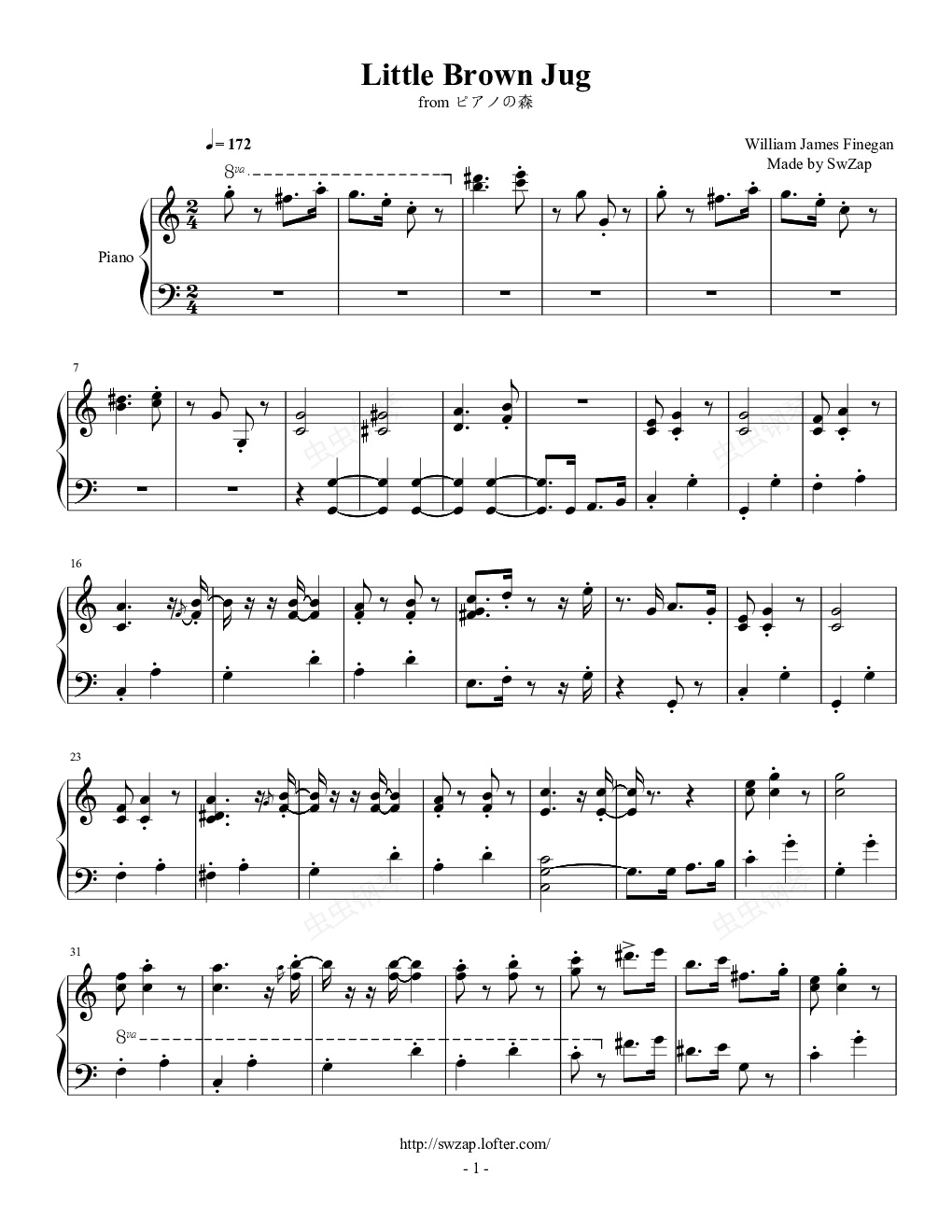 钢琴谱:《棕色小茶壶(Little Brown Jug)》(《琴之森》Ver.)