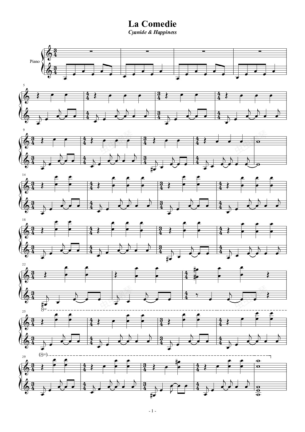 钢琴谱:【氰化欢乐秀】喜剧 La comedie