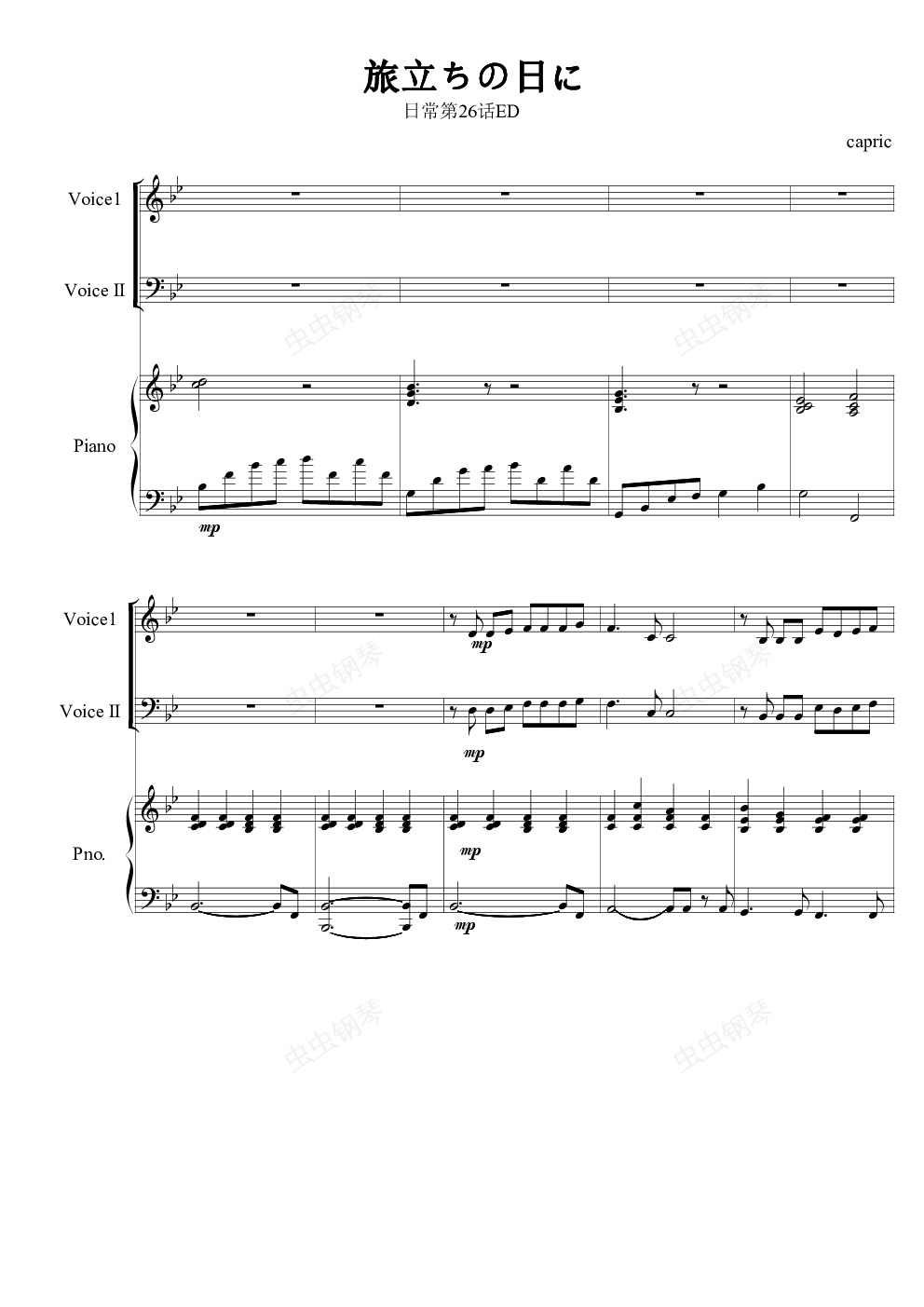 钢琴谱:旅立ちの日に(日常第26话ED)