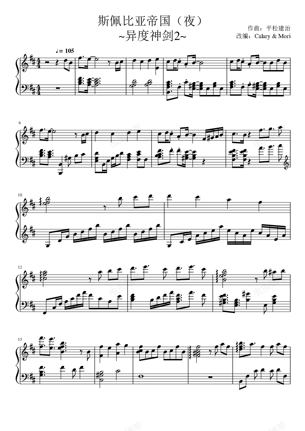 钢琴谱:异度神剑2-斯佩比亚帝国(夜)