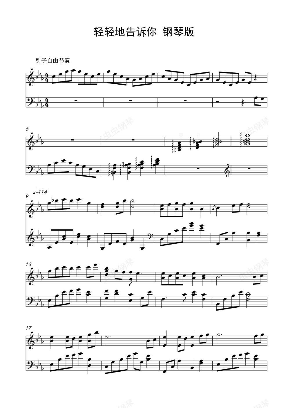 钢琴谱:轻轻地告诉你