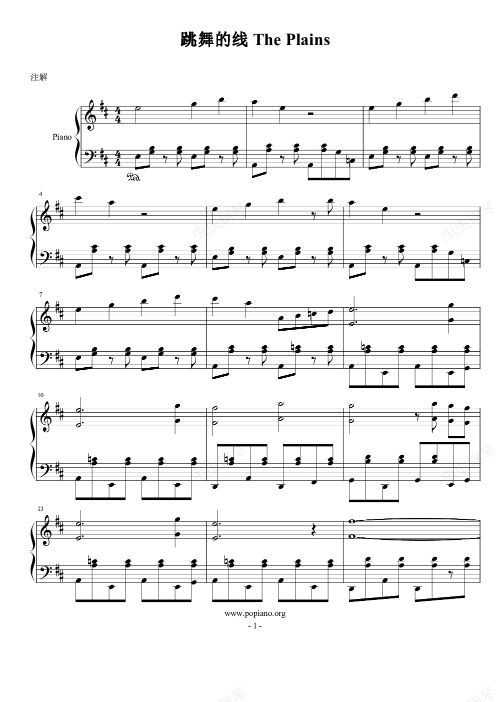 钢琴谱:跳舞的线The Plain 田野