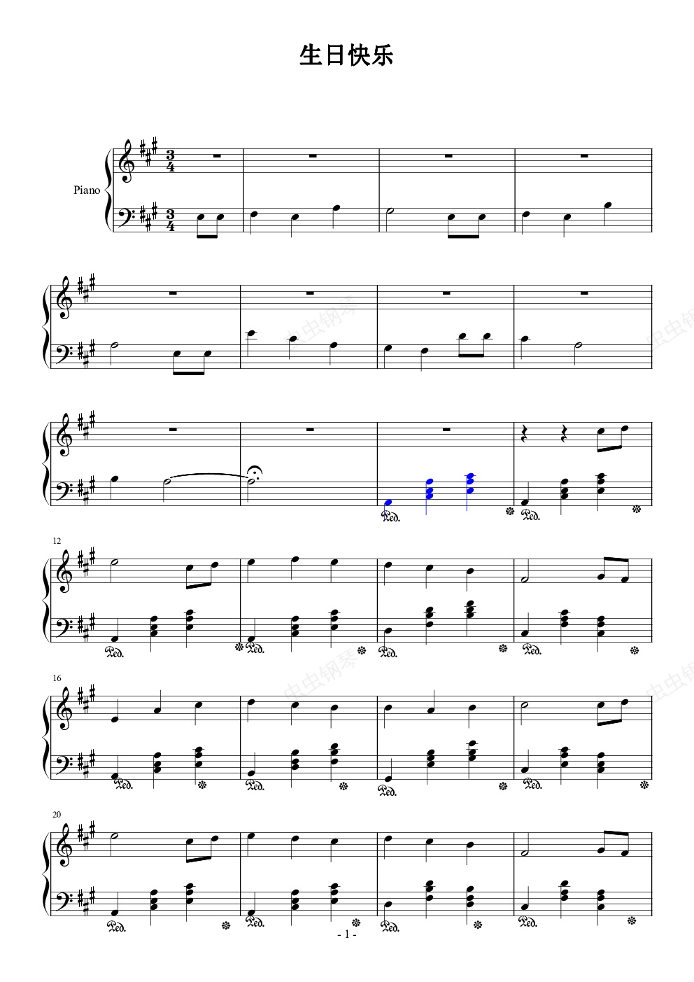 钢琴谱:生日快乐