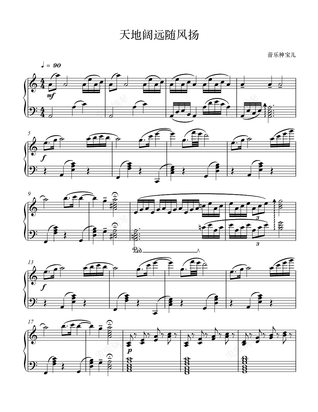 钢琴谱:《天地阔远风起扬》