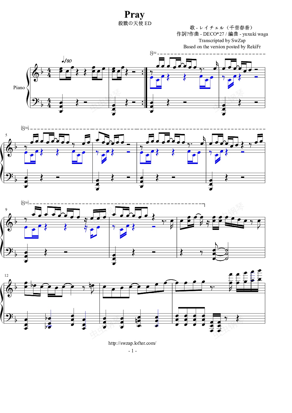 钢琴谱:《Pray》(《杀戮的天使》ED)