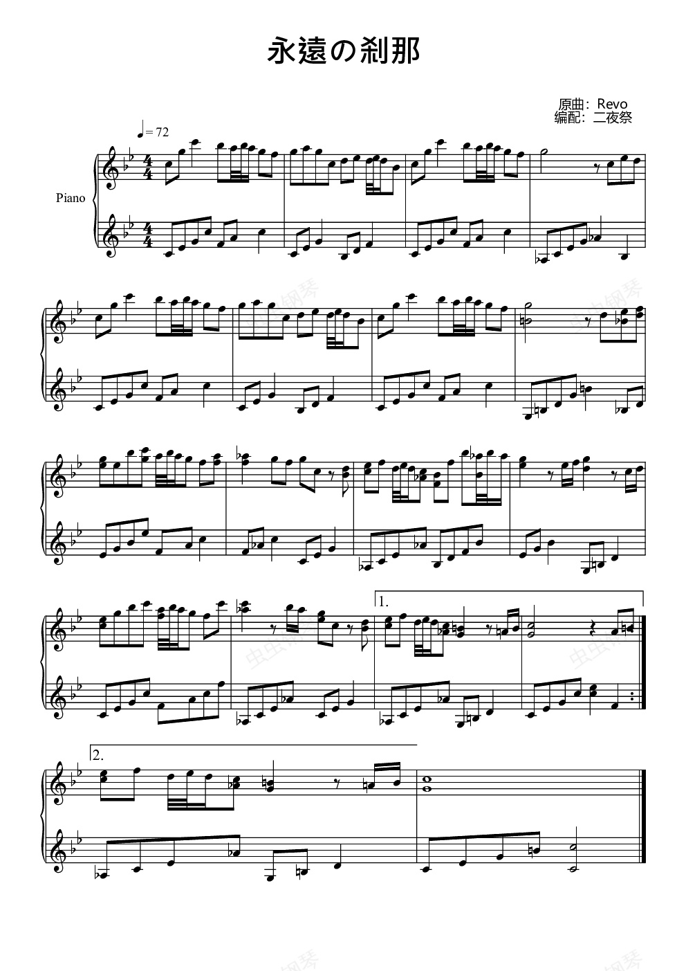 钢琴谱:【勇气原点】永遠の刹那