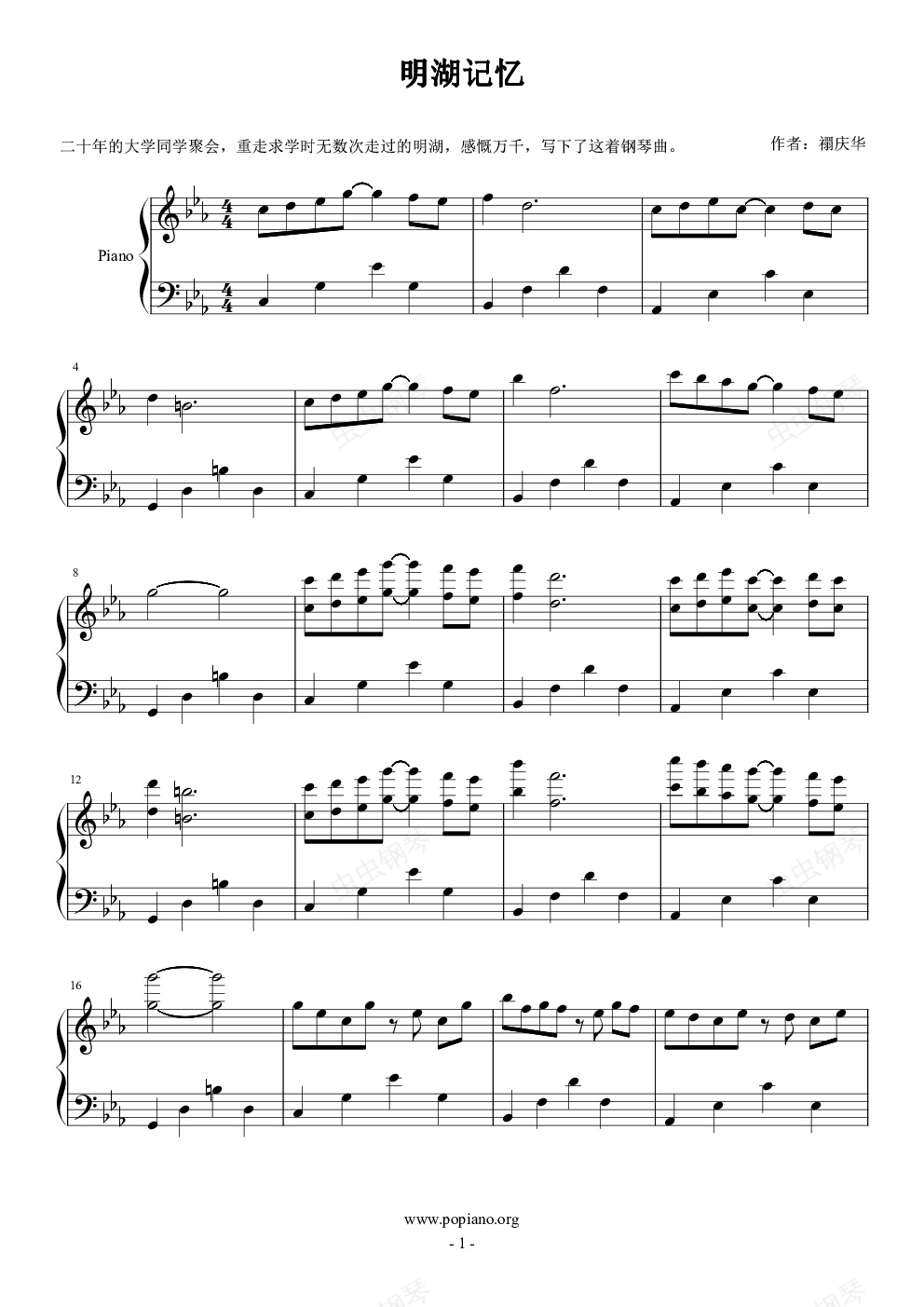 钢琴谱:明湖记忆