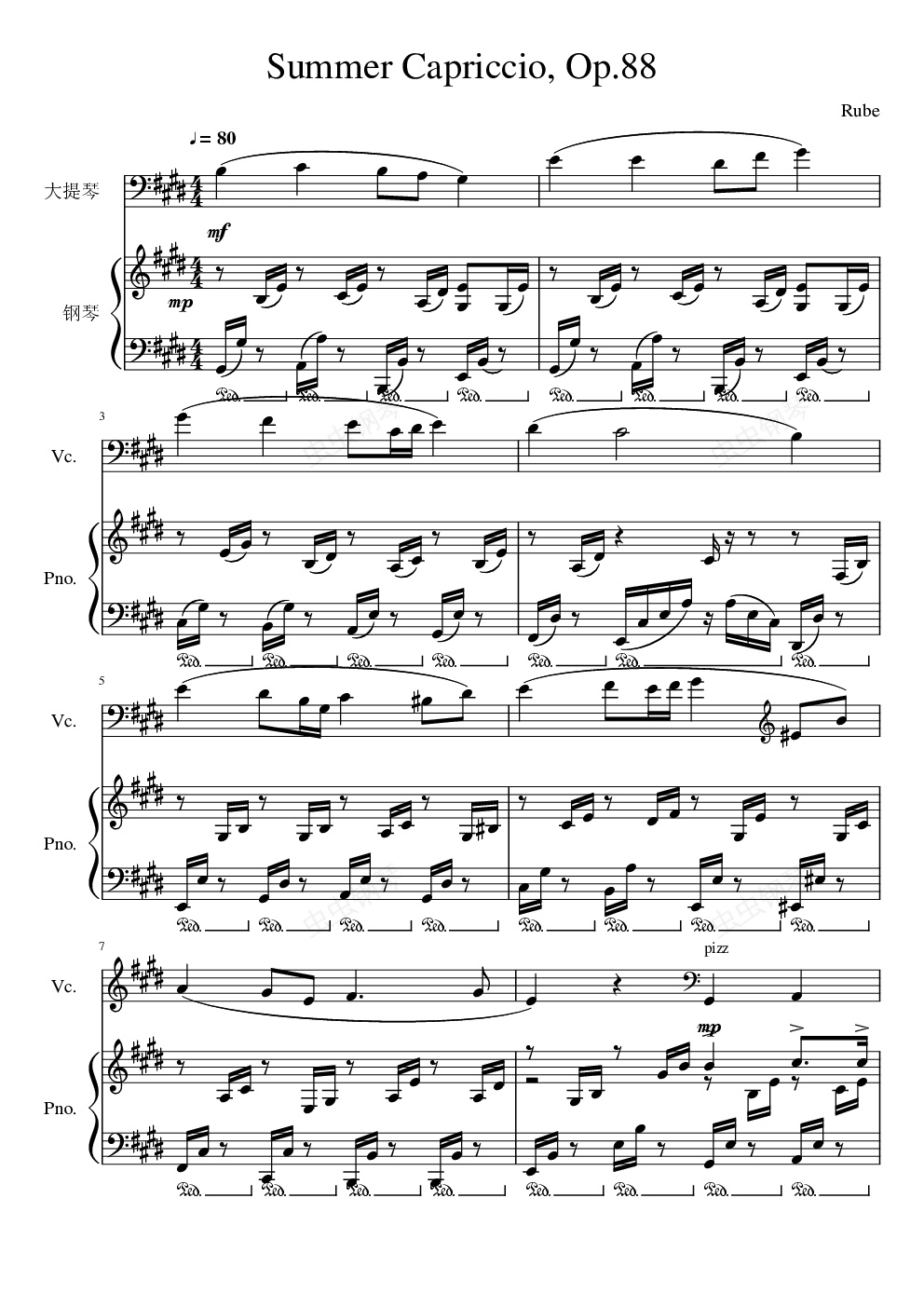 钢琴谱:Summer Capriccio, Op.88 夏日随想曲