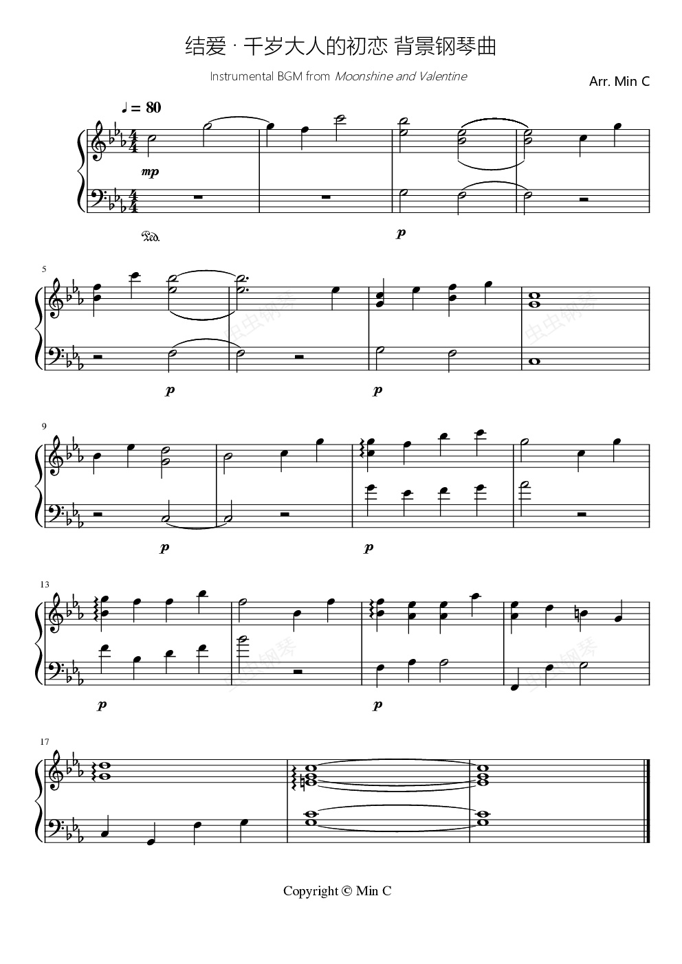 钢琴谱:结爱千岁大人的初恋背景钢琴曲