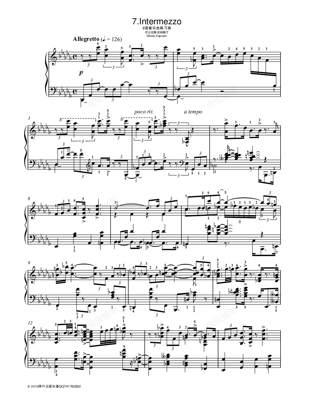 【爵士】【带指法】尼古拉斯凯帕斯汀 八首音乐会练习曲 Eight Concert Études Op 40 - No. 7. Intermezzo