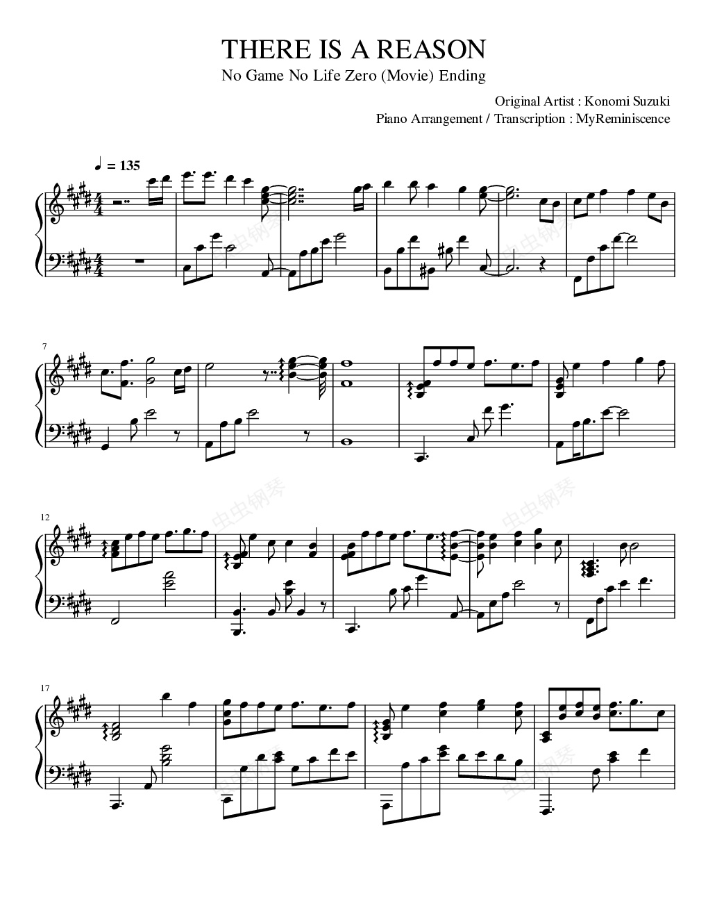 钢琴谱:There is a reason