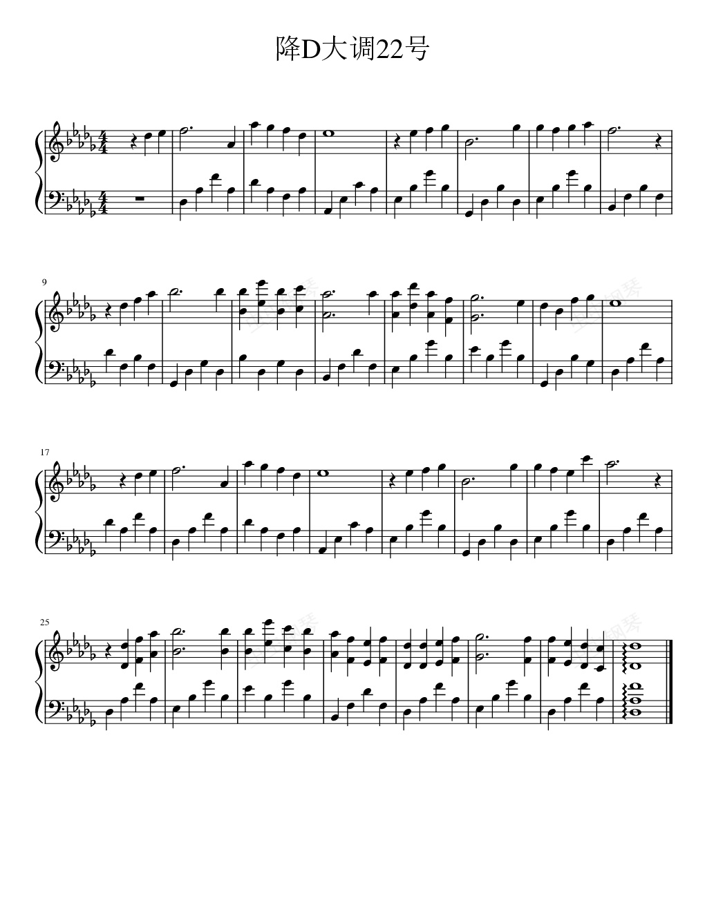 钢琴谱:降D大调22号