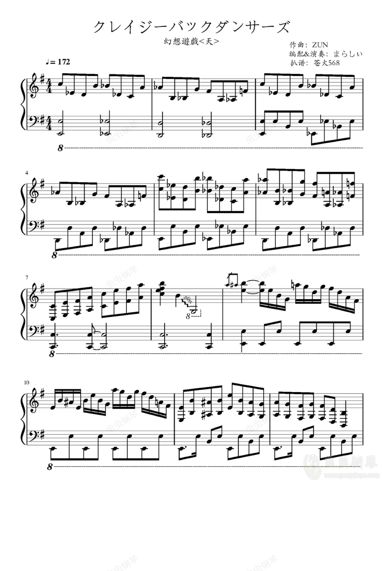 东方天空璋 5面BOSSS 尔子田里乃和丁礼田舞的主题曲 出自触手猴 幻想游戏 <天> 拥有在玩家背后起舞使游戏崩溃的能力( 之前0445大佬在b站做了猴子天空璋的连弹 很喜欢这首曲子 之后发现新砖里的这首曲子比连弹的内容多了一点 于是就把这首曲子又扒了一遍  安利45大佬的连弹谱 在b站搜索0445就可以啦