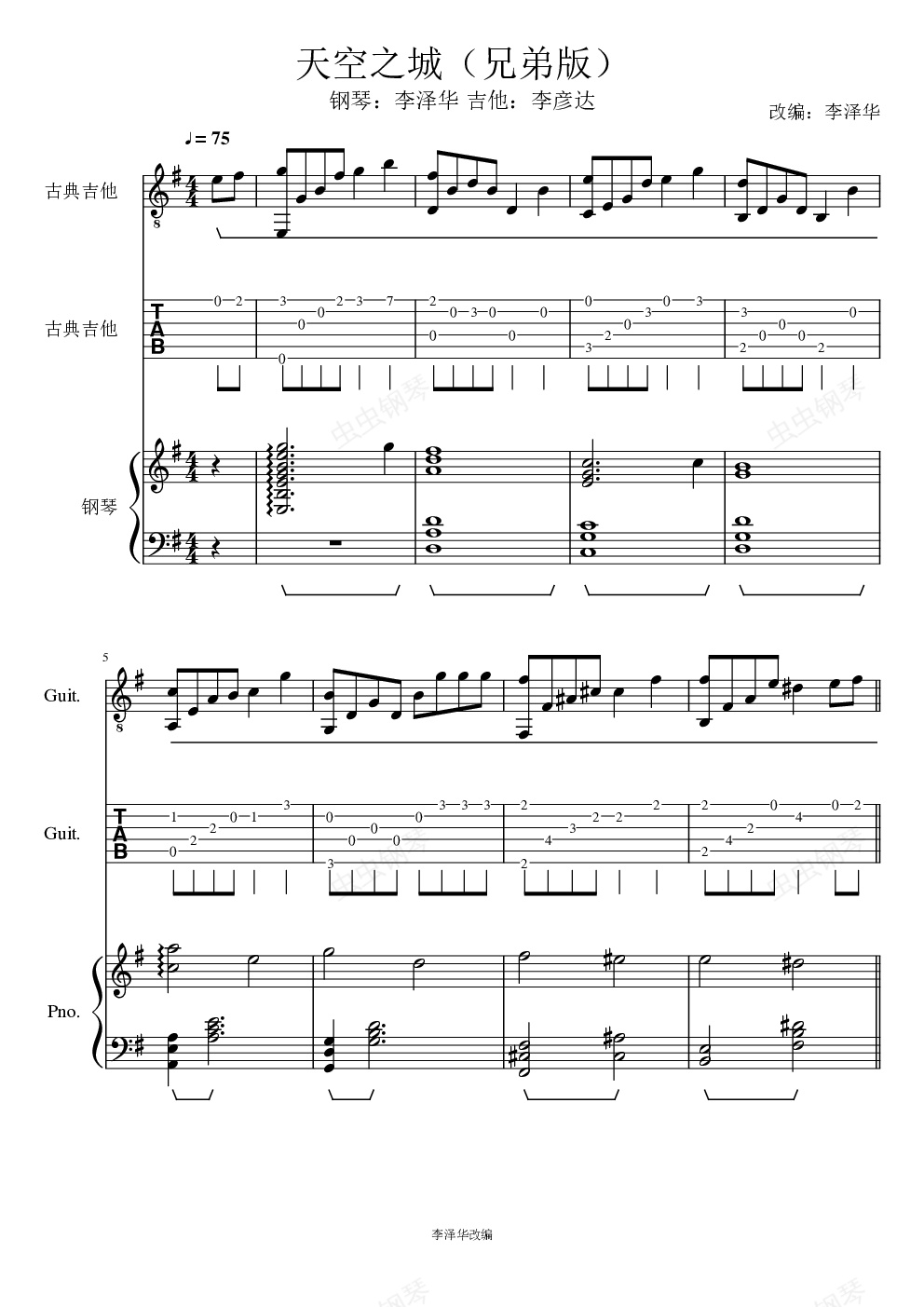 钢琴谱:天空之城(吉他、钢琴)