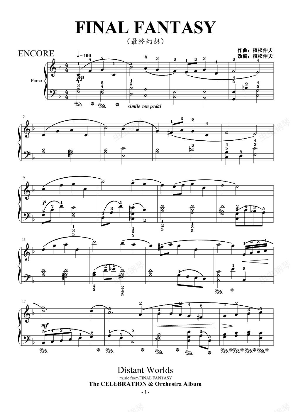 您的位置: 首页 > 钢琴谱库 > FINAL FANTASY(ENCORE)