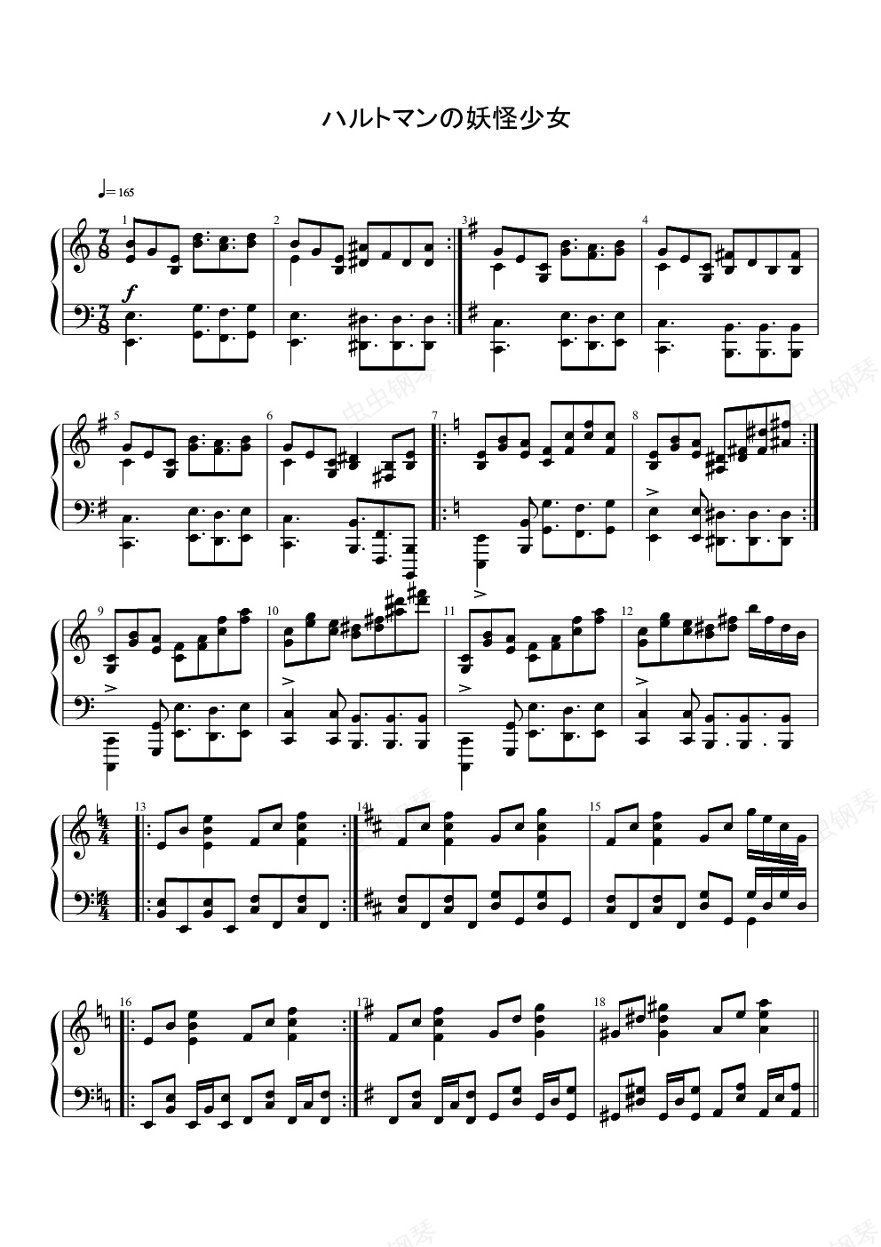 钢琴谱:【东方地灵殿】哈德曼的妖怪少女