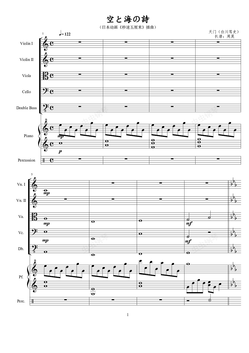 钢琴谱:空と海の詩(空与海之诗,秒速五厘米插曲)