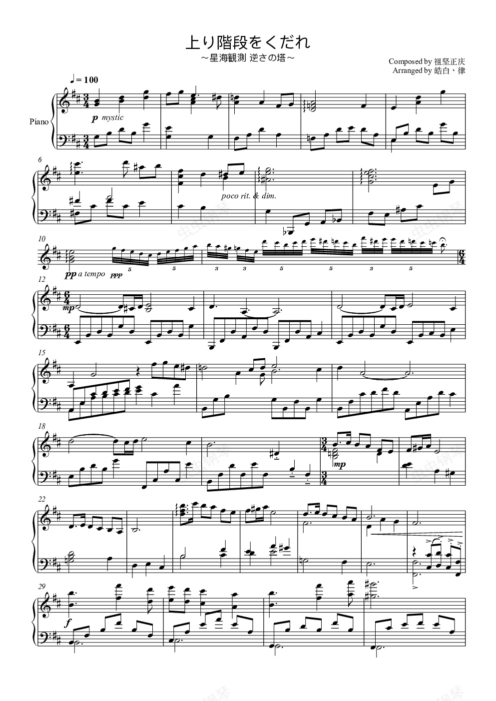 钢琴谱:【FF14】上り階段をくだれ ~星海観測 逆さの塔~