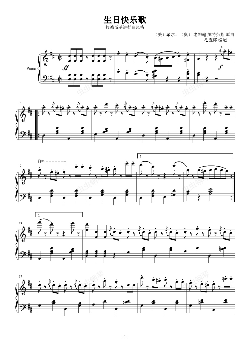 钢琴谱:生日快乐歌(拉德斯基进行曲风格)