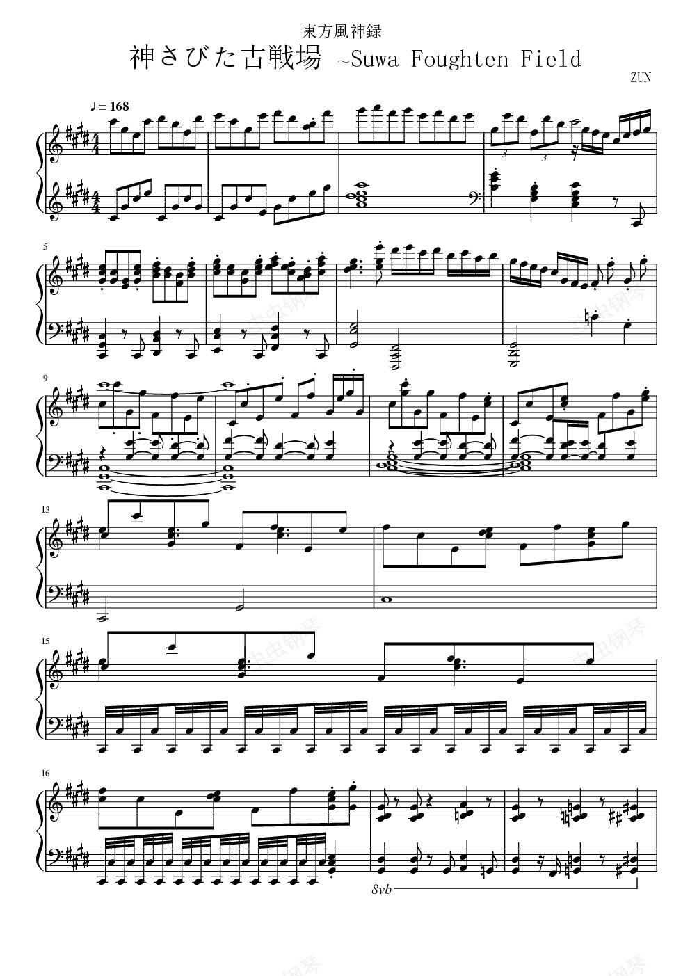 钢琴谱:【东方风神录】神圣庄严的古战场 ~ Suwa Foughten Field