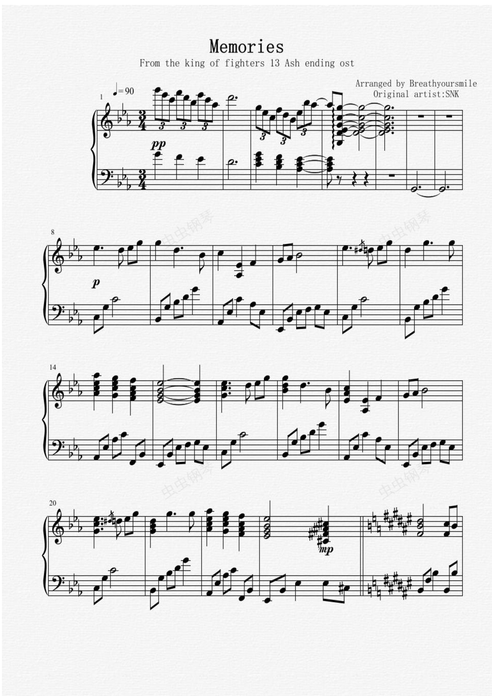 钢琴谱:Memories 拳皇XIII阿修消失曲