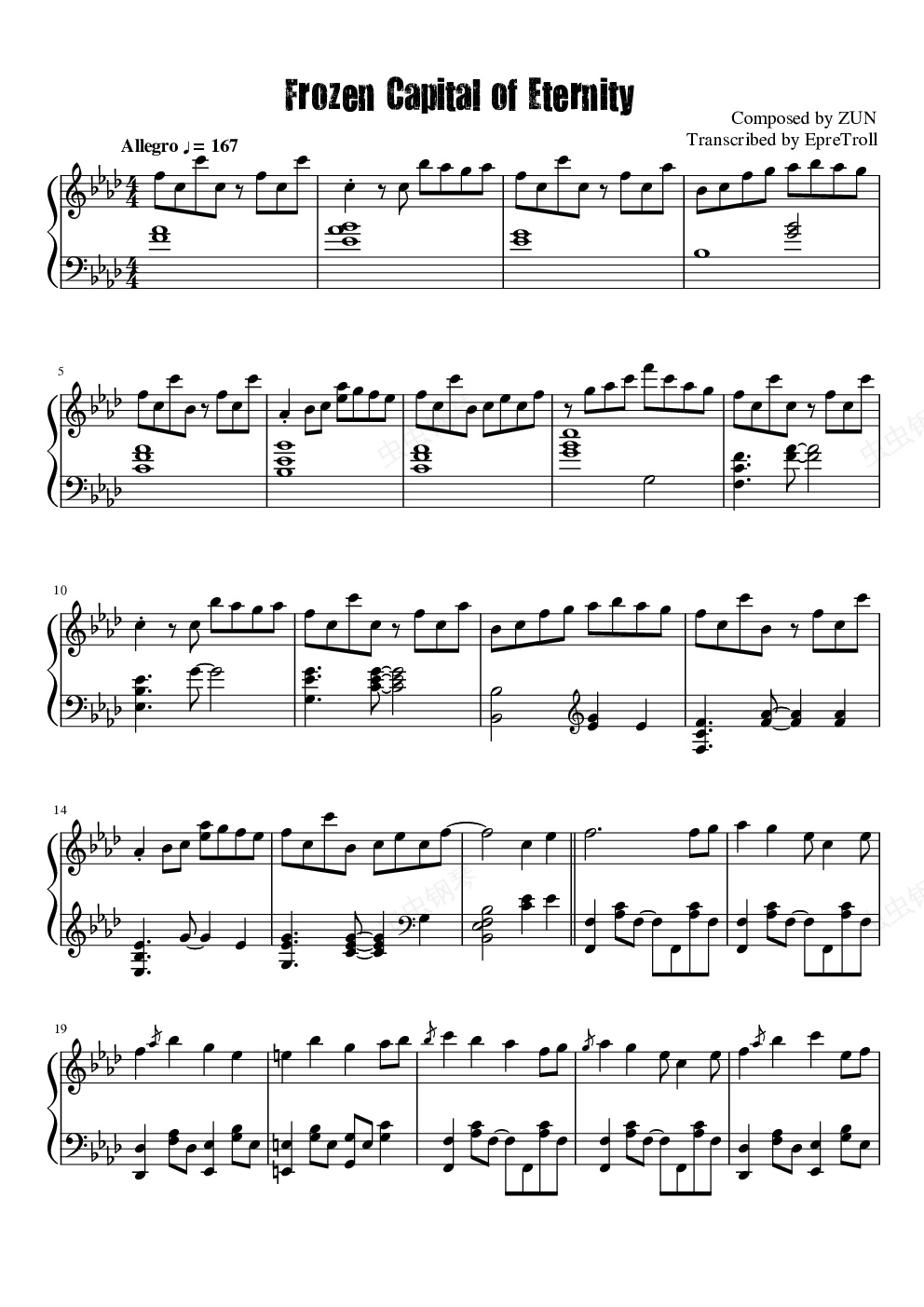 钢琴谱:【东方绀珠传】冻结的永远之都