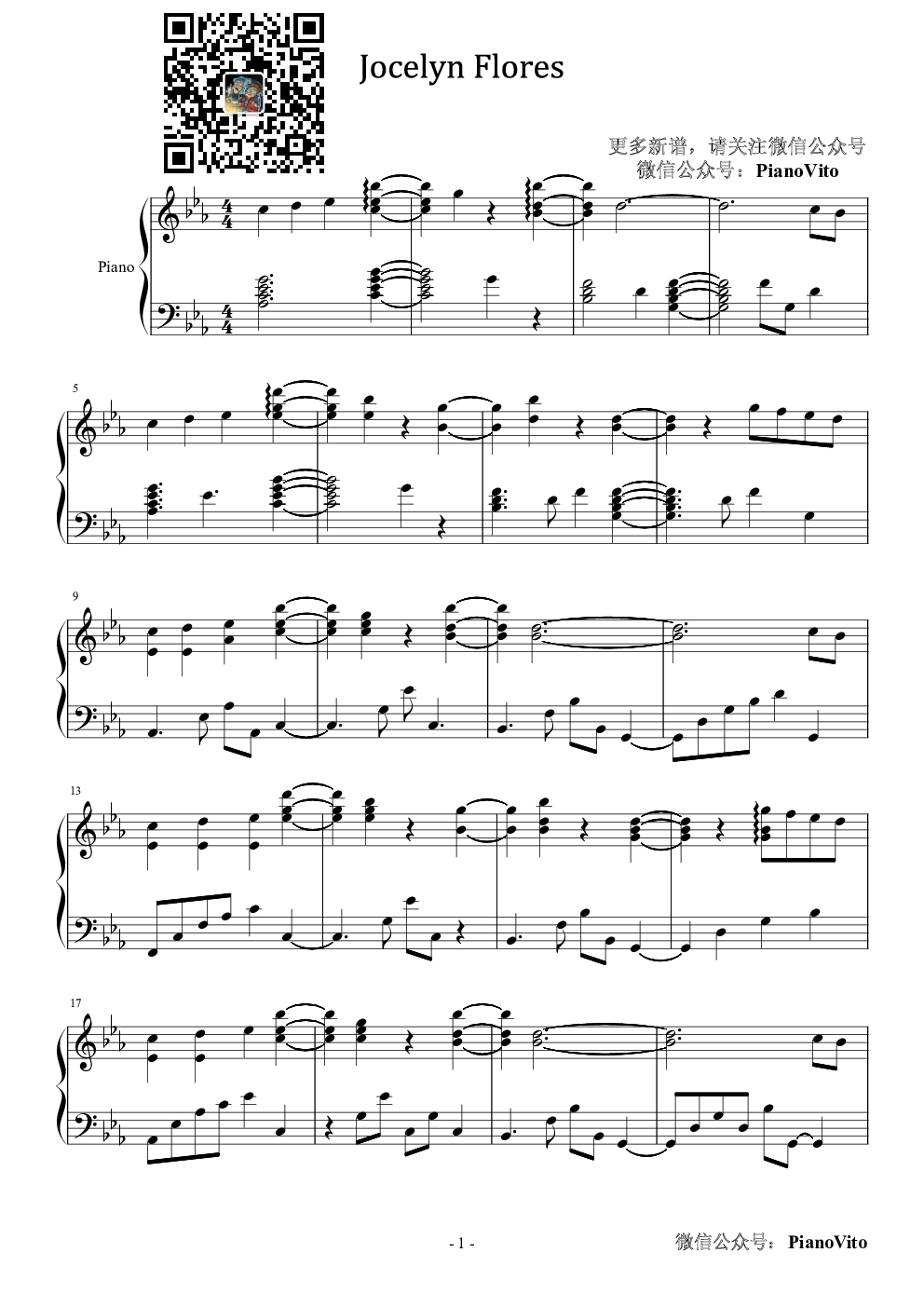 钢琴谱:Jocelyn Flores XXXTentacion