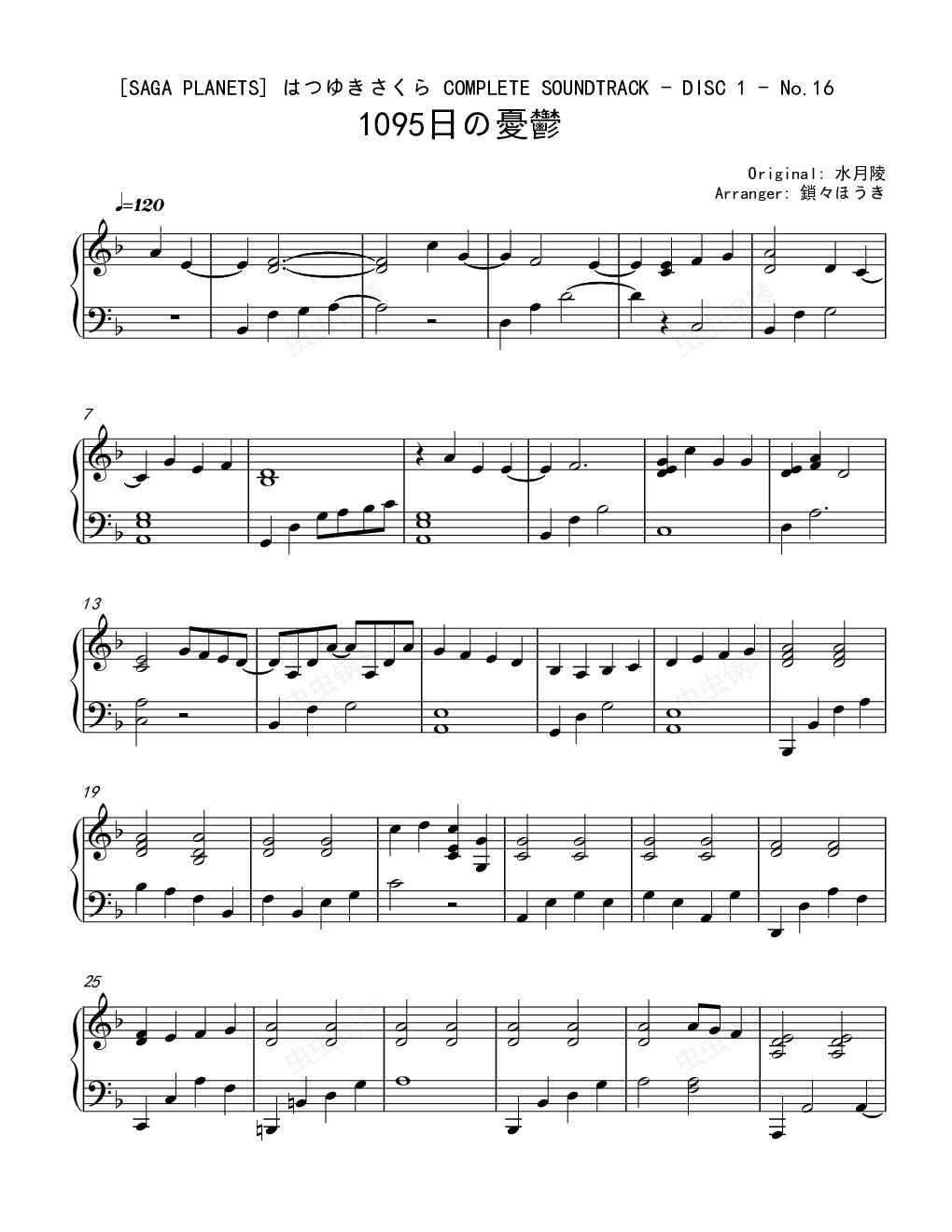 钢琴谱:【はつゆきさくら】1095日の憂鬱