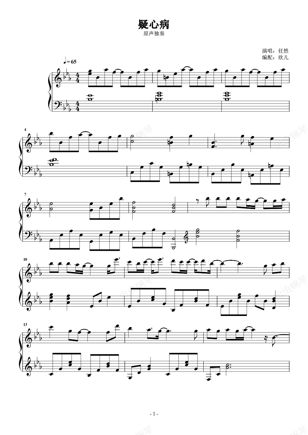 钢琴谱:疑心病 原声独奏