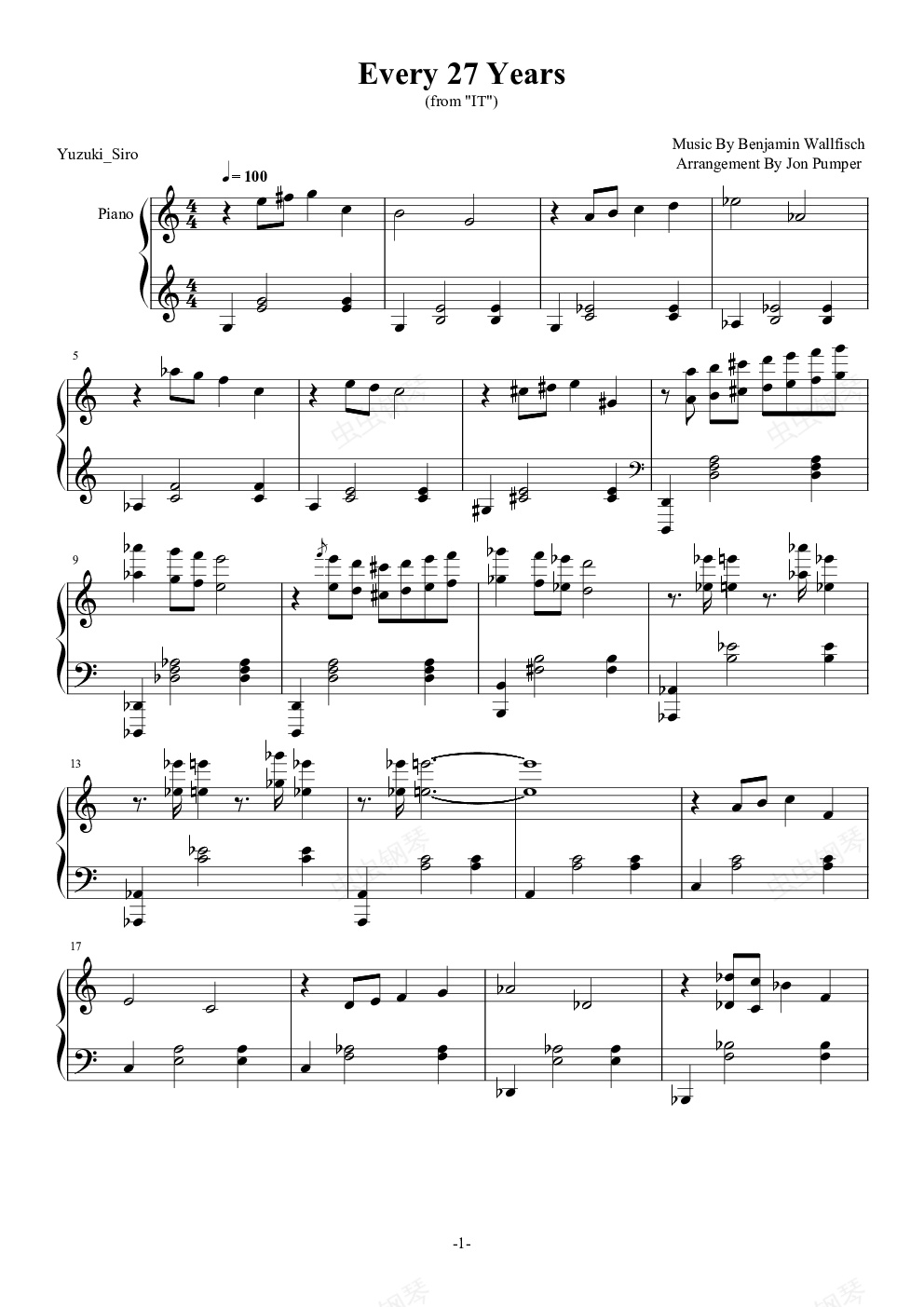 钢琴谱:小丑回魂【IT】主题曲-Every 27 Years