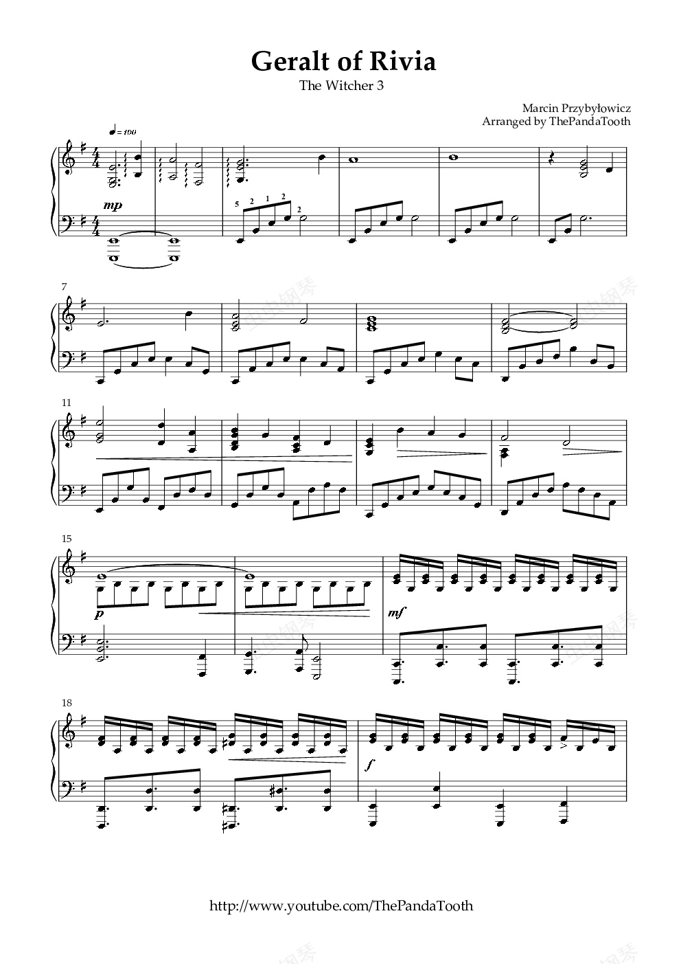 钢琴谱:巫师3 :狂猎 主题曲: <利维亚的杰洛特>