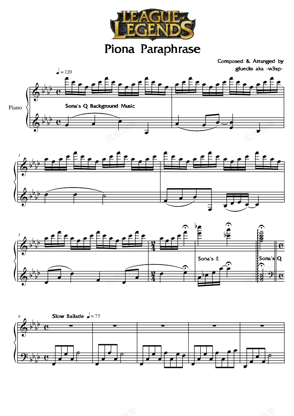 钢琴谱:英雄联盟 主题曲 League of Legends Piona Paraphrase