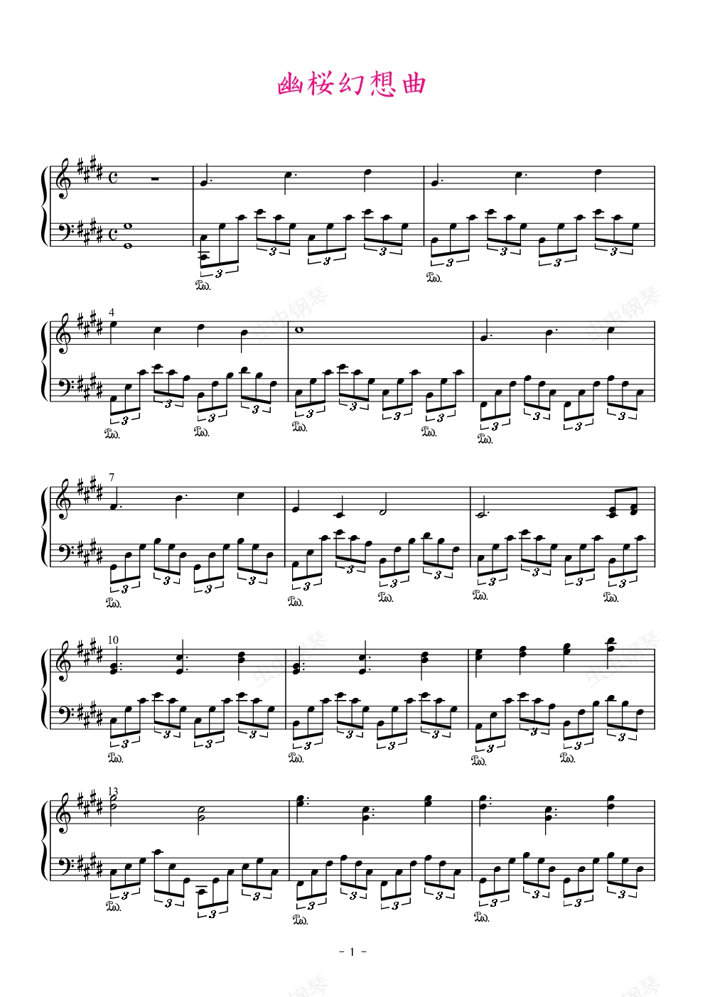 钢琴谱:【东方再编曲】幽樱幻想曲