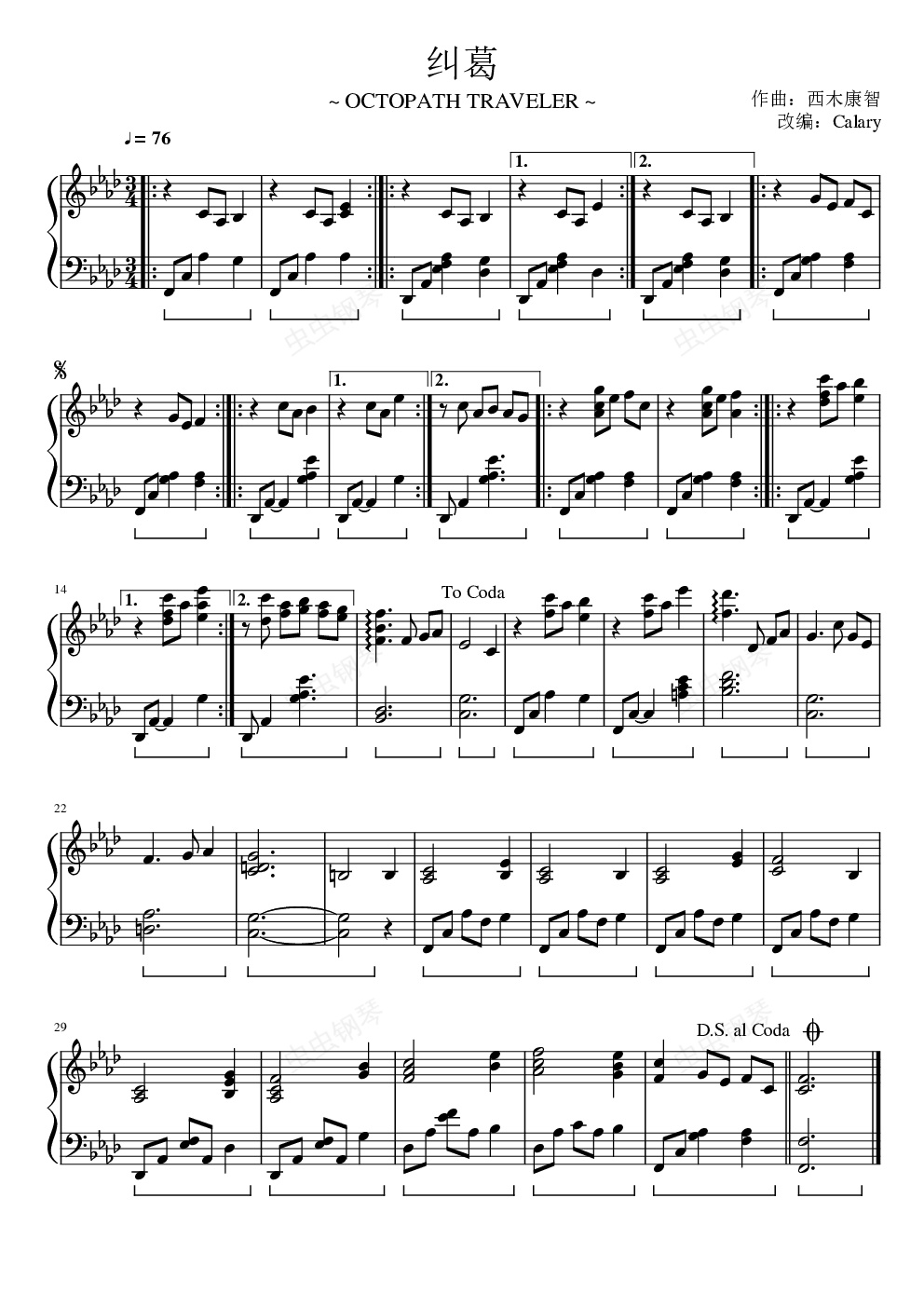 钢琴谱:八方旅人-葛藤