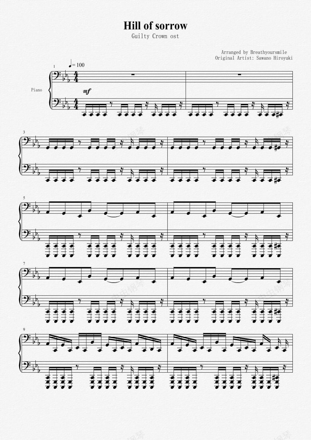 钢琴谱:Hill of Sorrow-From Guilty Crown 罪恶王冠ost