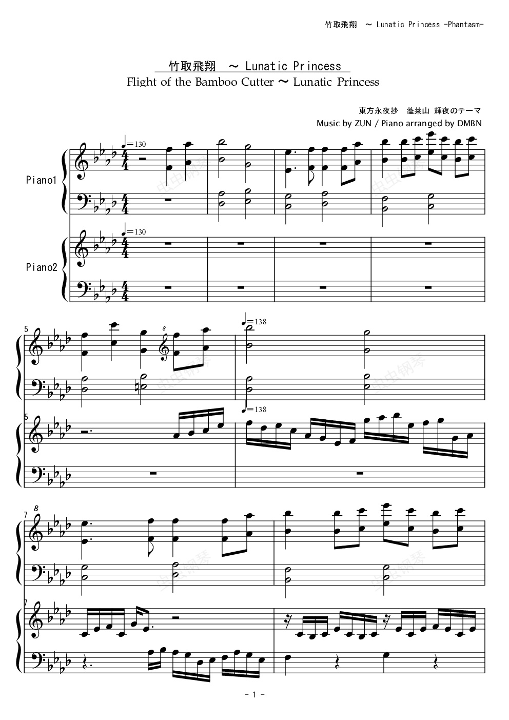 钢琴谱:【东方永夜抄】竹取飞翔 ~ Lunatic Princess
