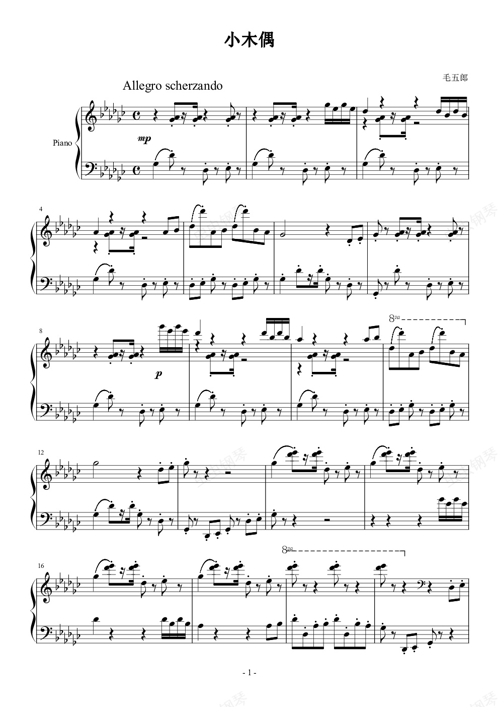 钢琴谱:小木偶