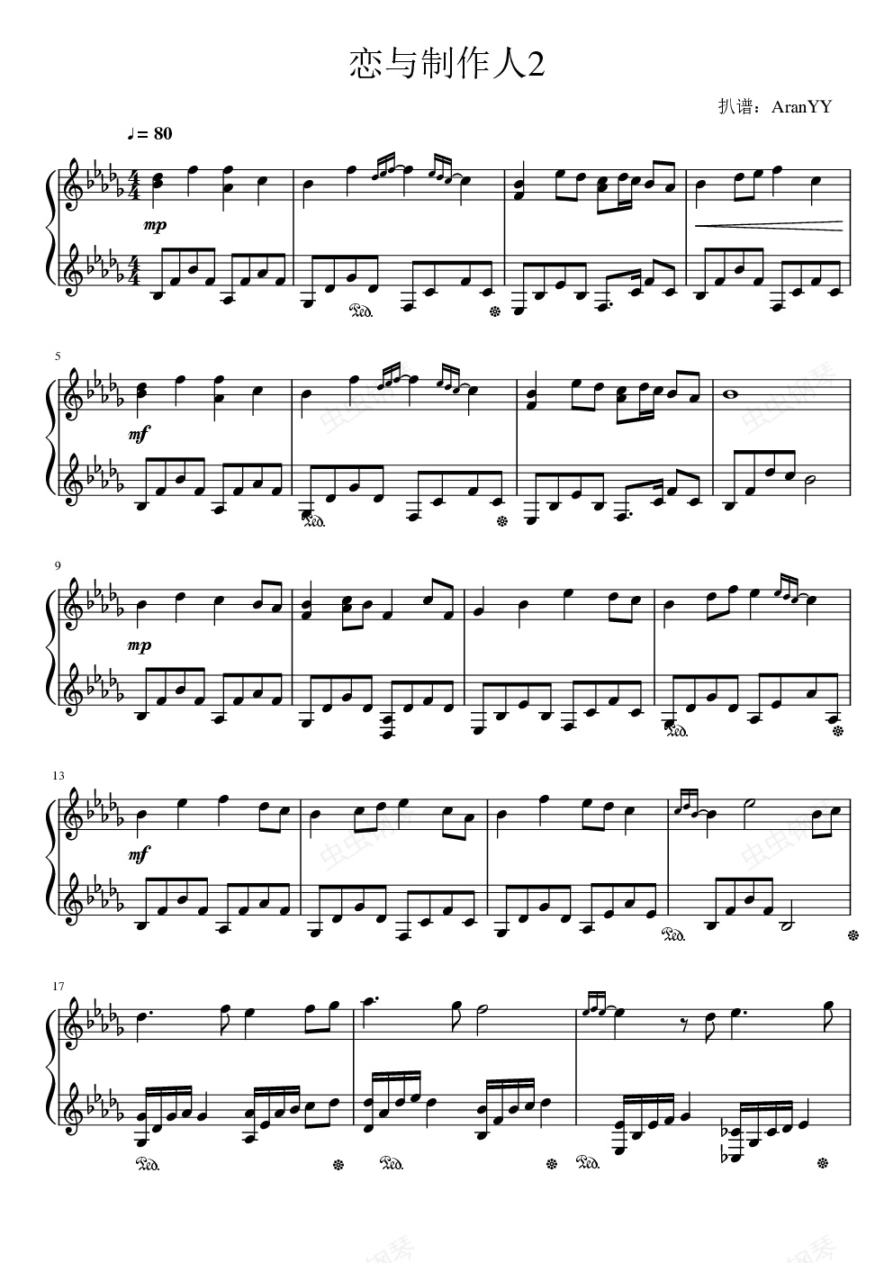 钢琴谱:恋与制作人七夕bgm 与君/君望鹣双