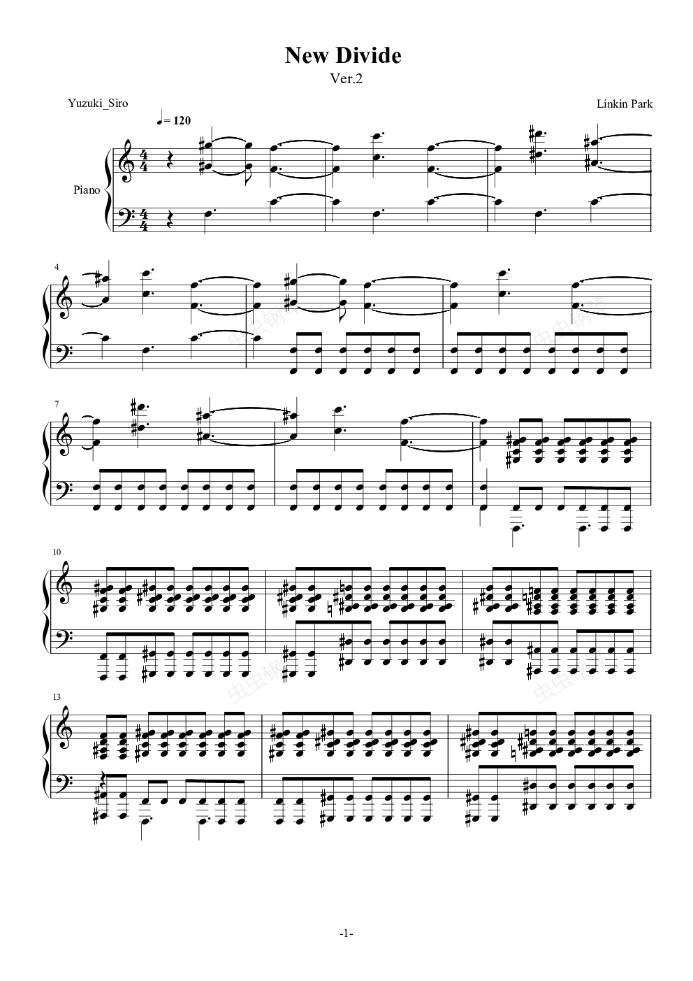钢琴谱:New Divide-Linkin Park【稍难版本】