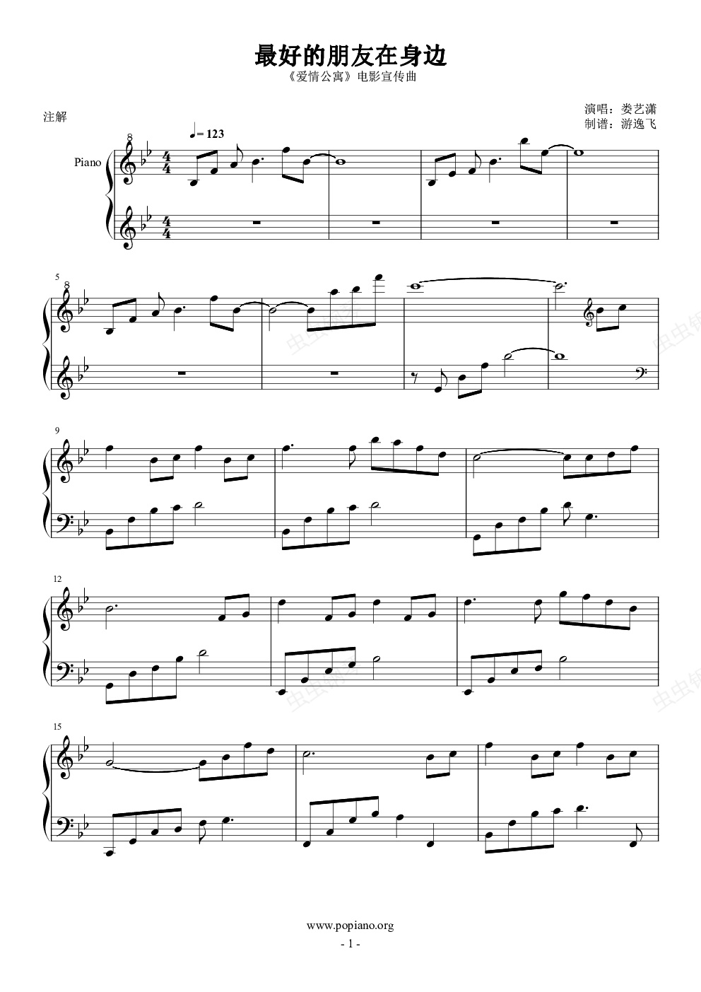 最好的朋友都在身边,想爱的人就住在对面。爱情公寓原班人马十年催泪重聚。曾小贤、胡一菲、吕子乔、张伟、唐悠悠、陈美嘉悉数回归,还是熟悉的场景和熟悉的人,嘻嘻哈哈、打打闹闹,笑声从没停过。老朋友的故事将继续展开,印证了电视剧的那句主题语——“最好的朋友在身边,最爱的人就在对面”。不过这一次,他们打算搞个大事情…… 试听//#hash=89&=0声明:由于虫钢不知道怎么修改,所以以后的乐谱修改只会体现在【弹琴吧】(即【蛐蛐钢琴网】)蛐蛐钢琴网/