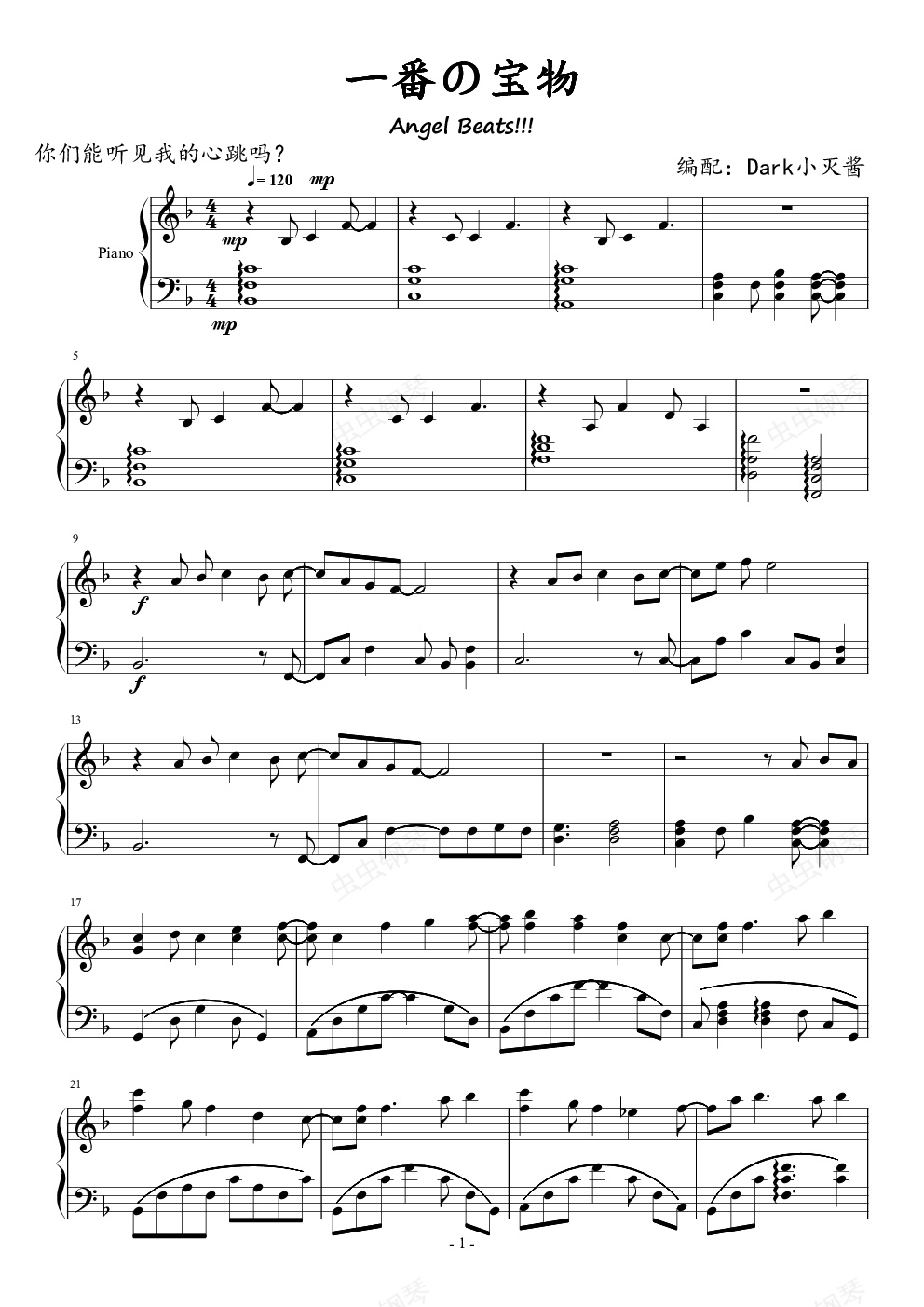 钢琴谱:【Angel beats!!!】ED一番の宝物 高还原版
