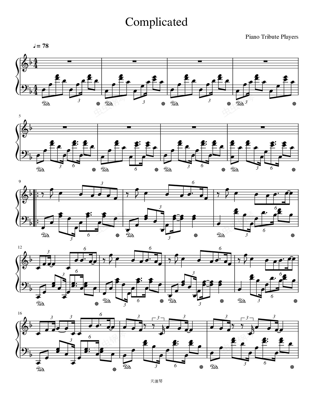 钢琴谱:Complicated